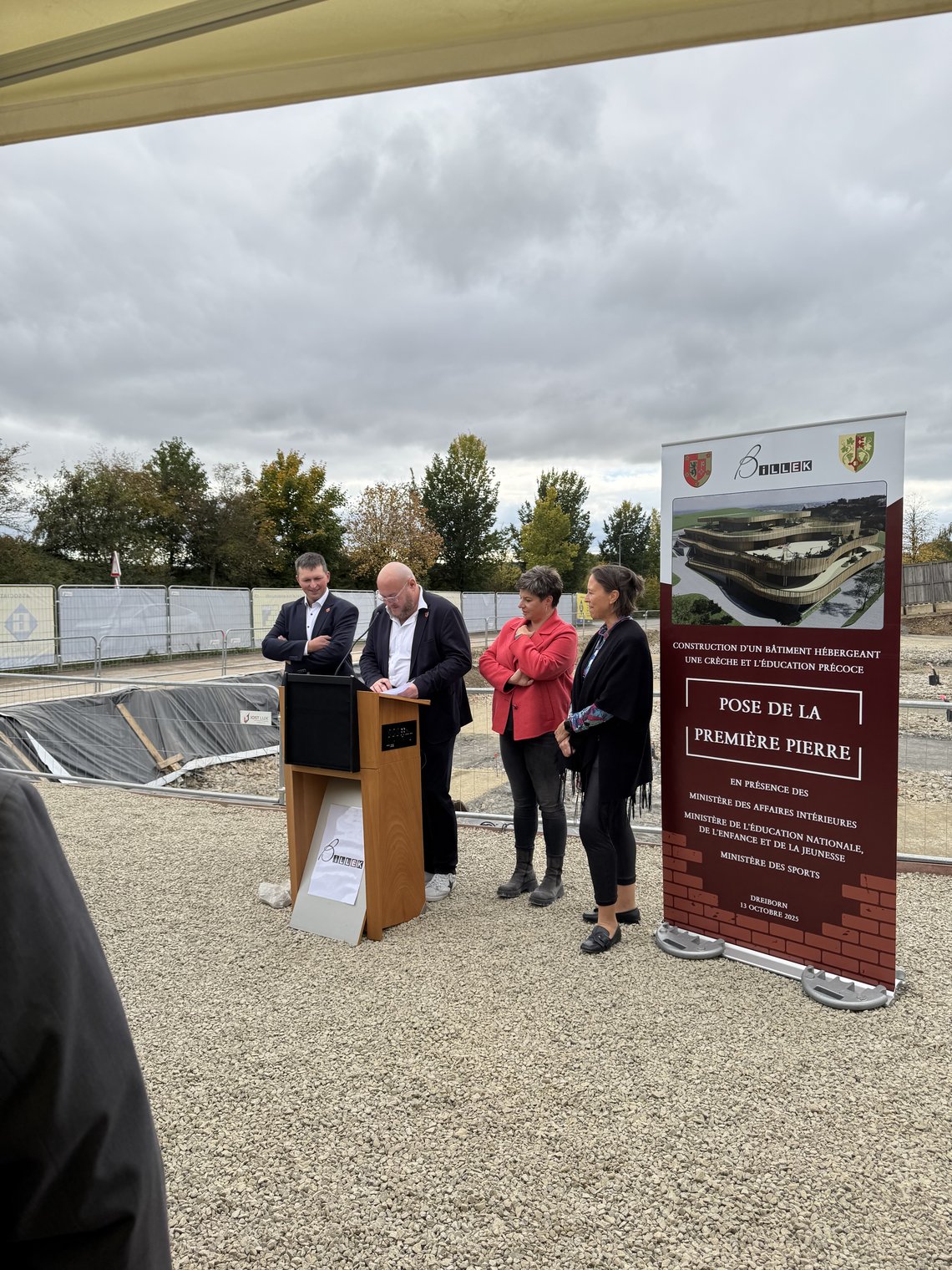 Le 13 octobre, la cérémonie de la pose de la première pierre qui s’est déroulée en présence des ministres Léon Gloden et Georges Mischo, du directeur de l’Enseignement Joa Baum, ainsi que des bourgmestres Paul Ruppert (Flaxweiler) et Claude Pundel (Wormeldange) a marqué une étape importante du projet.
