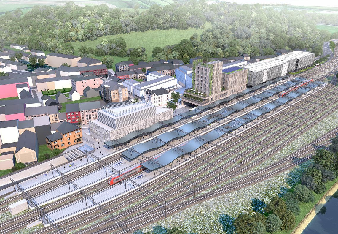 Le pôle d’échange multimodal d’Ettelbruck permet de renforcer l’intermodalité, améliorer la qualité des espaces publics de l’ensemble du quartier et favoriser les transports collectifs et la mobilité douce. Le projet se compose des sept modules suivants pour trois maîtres d’ouvrage :