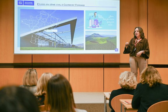 Dernière à prendre la parole, Faiza Benyahia, Chef d’unité au sein de Schroeder & Associés et spécialisée en structures métalliques, a partagé son parcours inspirant, mêlant audace, persévérance et passion pour l’ingénierie. Fille de parents analphabètes, elle raconte qu’être ingénieure lui paraissait tout simplement impossible, mais que les concours de circonstances, lorsqu’on sait les saisir, peuvent transformer une vie.